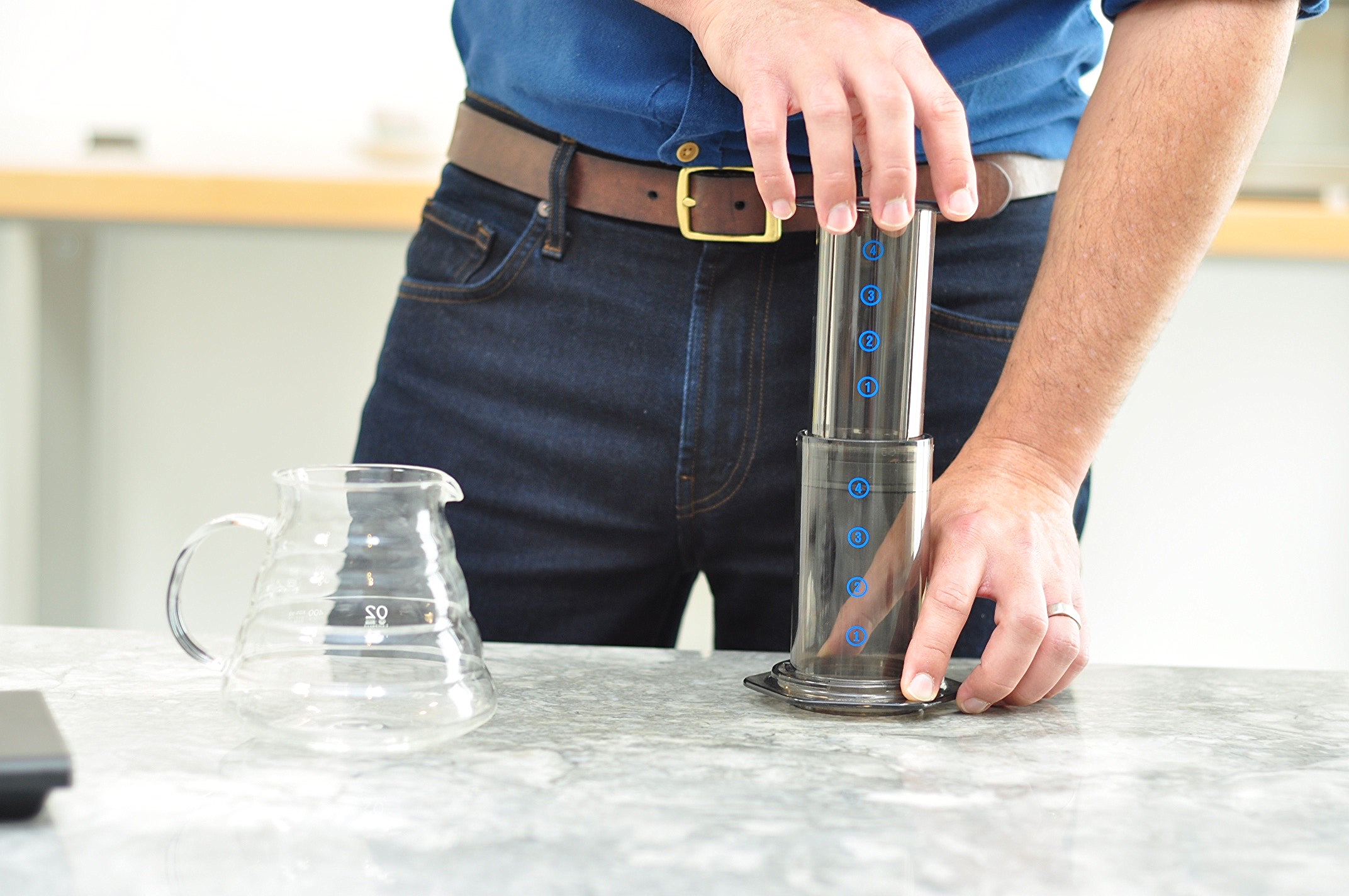 If you are not using a scale fill the aeropress to the #1 marking on the brew chamber.